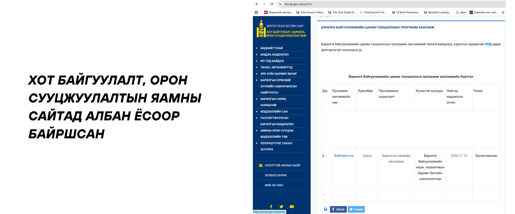 Хот байгуулалт, орон сууцжуулалтын яамны бүртгэл шалгах